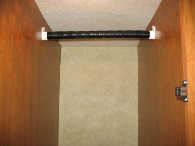 Step inside the garage using the rear ramp or side man door. Loading is made easy into the 10' garage space and there are several tie downs to secure your load. Choose the optional HappiJack power bunks for added sleeping space when the toys are removed. You can also choose an optional lounge chair. There are overhead cabinet the entire width of the unit just before you head through the glass patio doors into the main living space.