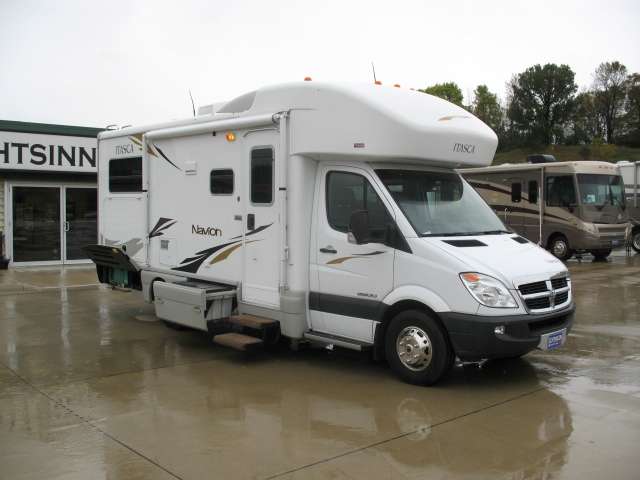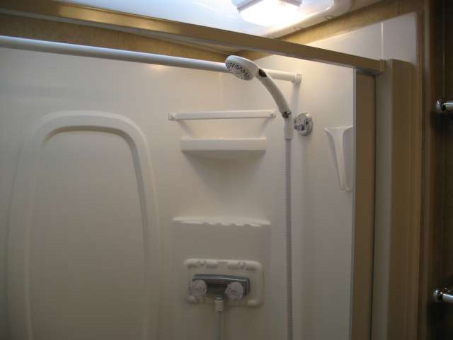On the exterior there is a gasoline pump station, a pass-through storage compartment in the center, and an optional outside entertainment center also.