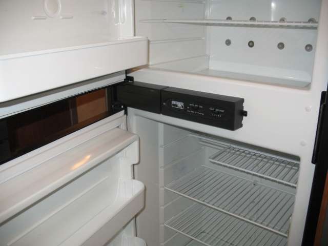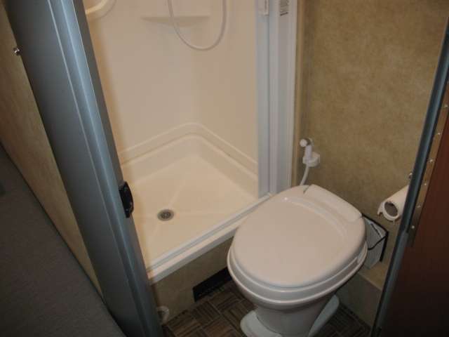 The kitchen offers a spacious area to prepare and cook food for your hungry crew. There is a pantry for dry good storage, a refrigerator, three burner range with 21" oven, and counter area with double kitchen sink. Plus, there is plenty of overhead storage for all of your dishes and things.
