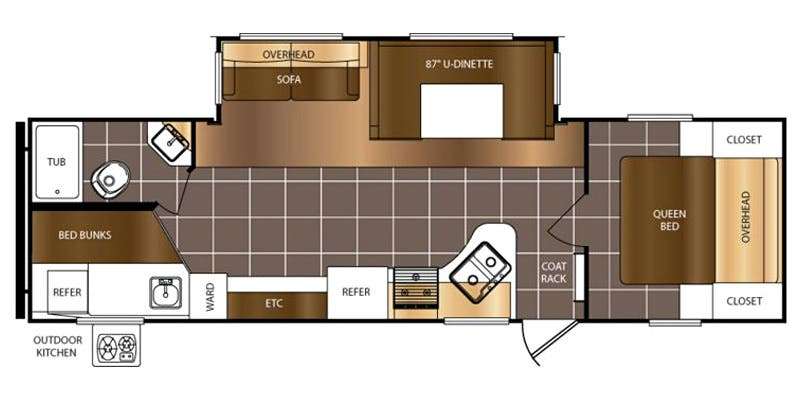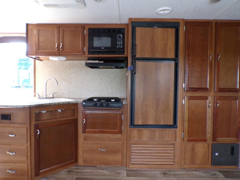 Looking for a family-friendly travel trailer under 34ft? The Avenger 27DBS by Forest River is a great fit for first time RVers and families. Enjoy a private front queen bedroom with ample wardrobe space. The slide-out creates a spacious living area with a sofa and U-dinette. Large windows offer great views, and the kitchen features residential appliances along with a pantry. Kids will love the rear bunk area with double bunks and a full bath!