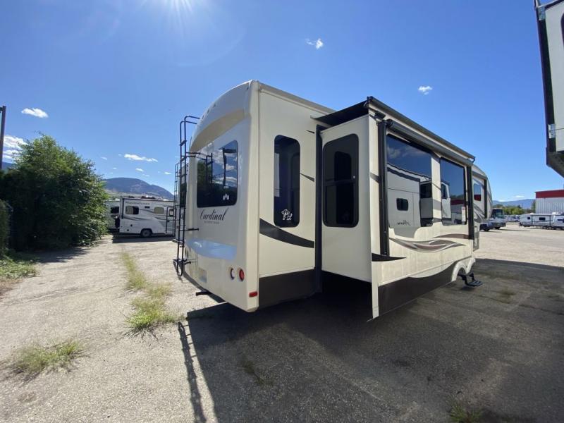 Entertain a few friends inside the Cardinal 3850RL fifth wheel by Forest River. This model has triple slides, a rear living area, and plenty of room on the inside for the whole gang.
