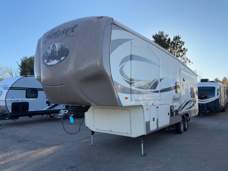 AS IS!!! CALL FOR DETAILSStart your next camping trip inside the Cedar Creek Silverback fifth wheel model 29RE by Forest River. Triple slides, a rear entertainment center, and plenty of floor space can be found inside this model.You will also love the cathedral slide out along the curb side as well.