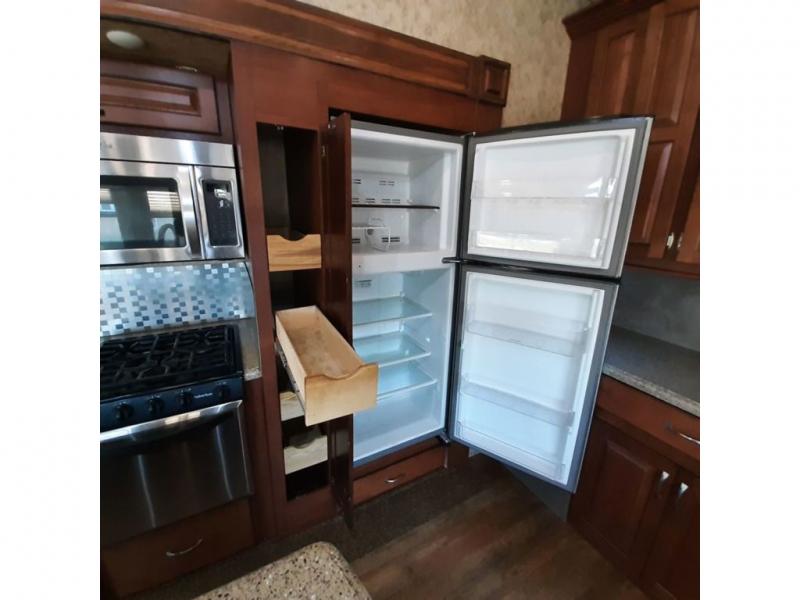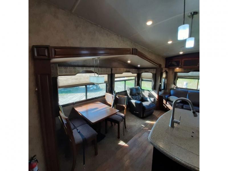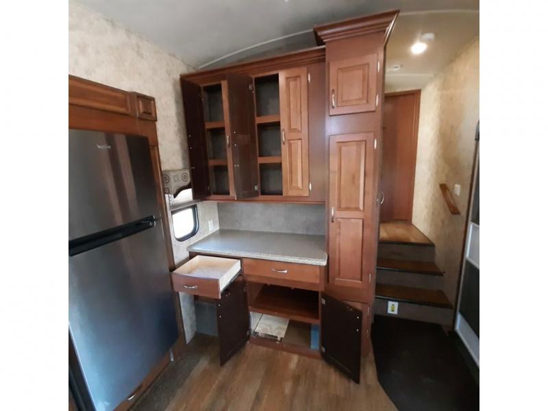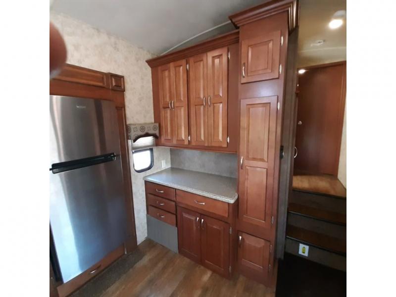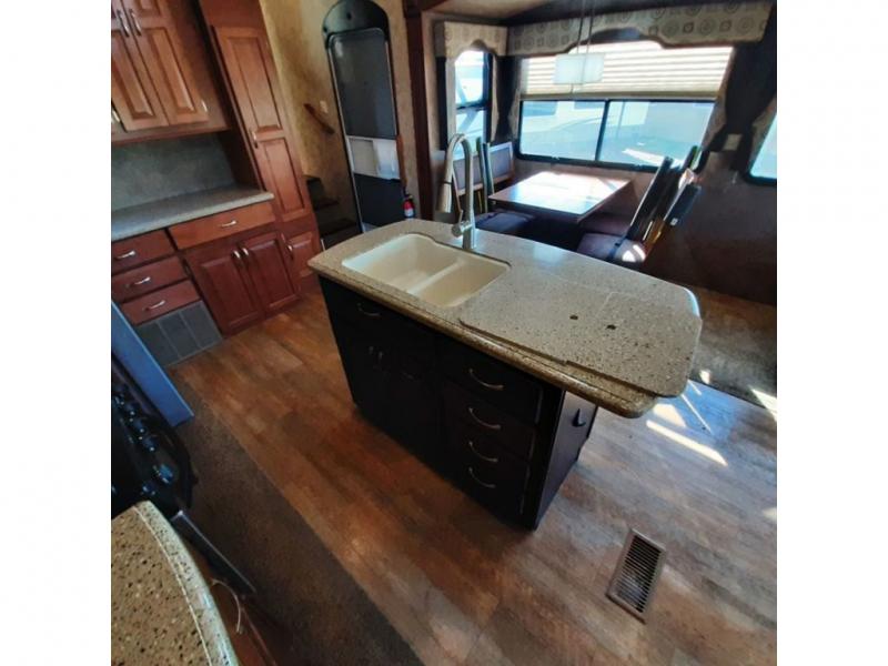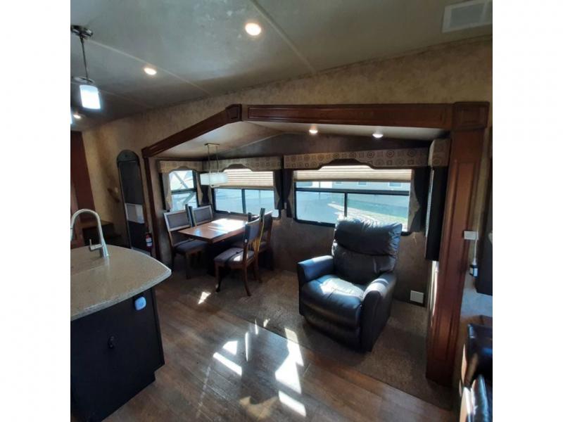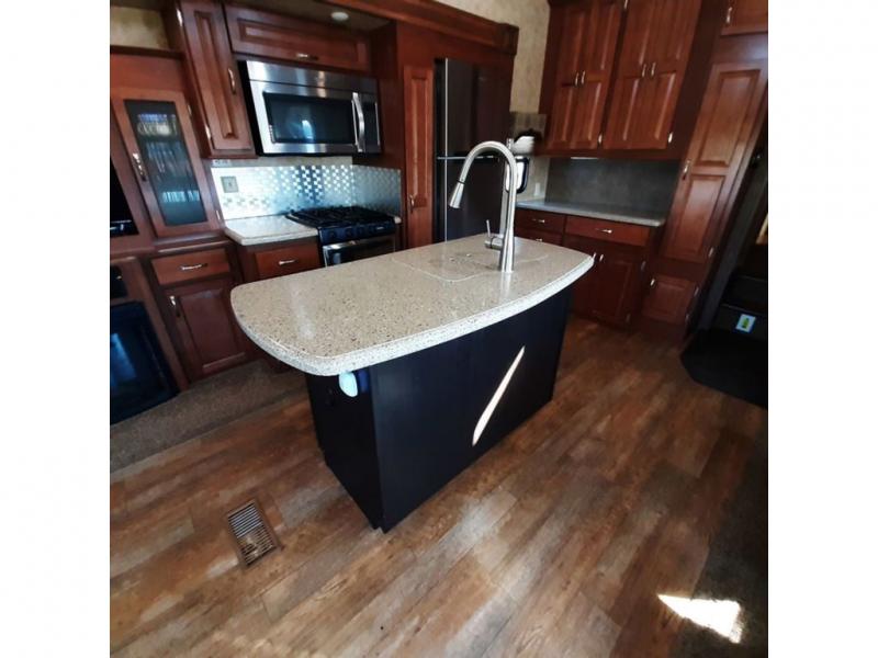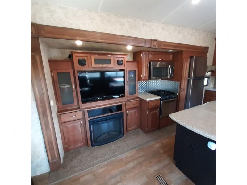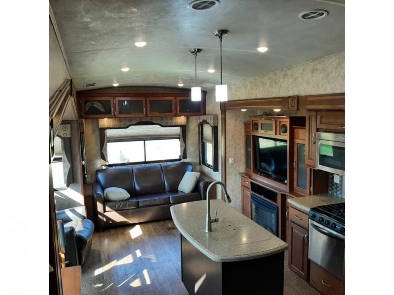 As you look at the Cedar Creek Silverback 33IK fifth wheel by Forest River you will notice that this fifth wheel has triple slides and a kitchen island.