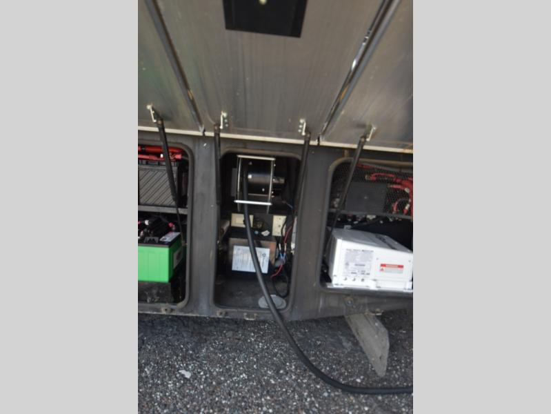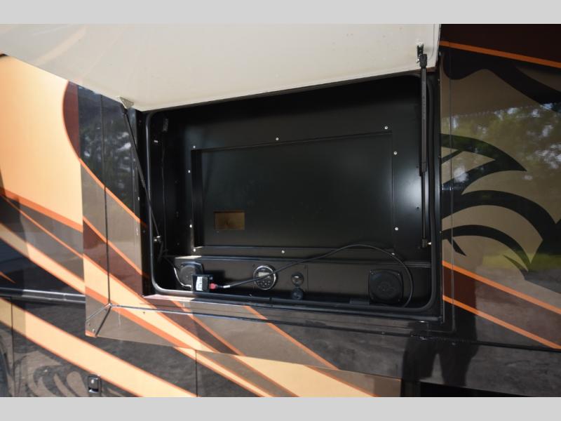 Outdoor Entertainment & Storage with a power awning, exterior LED TV, and large pass-through storage compartments for all your travel gear.