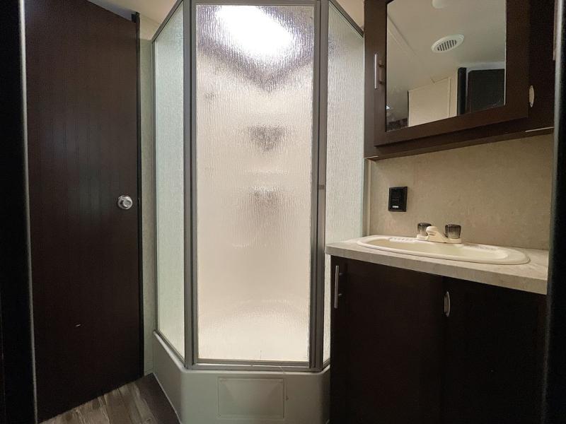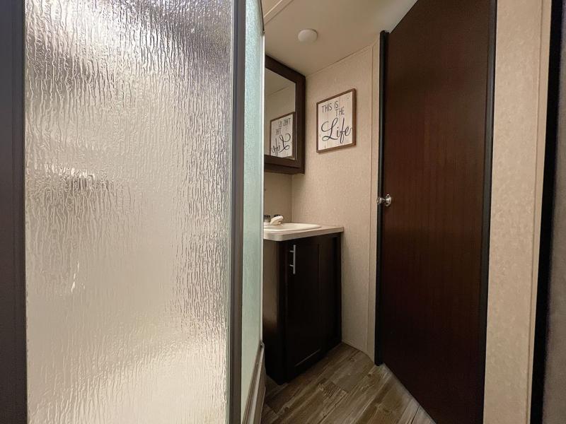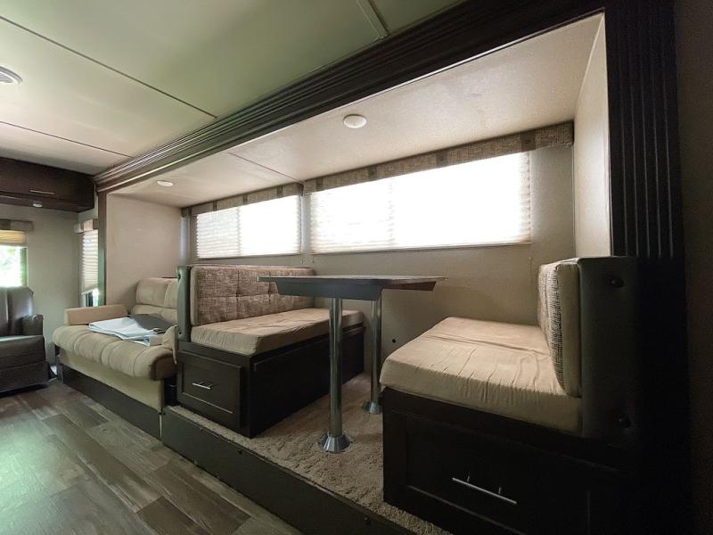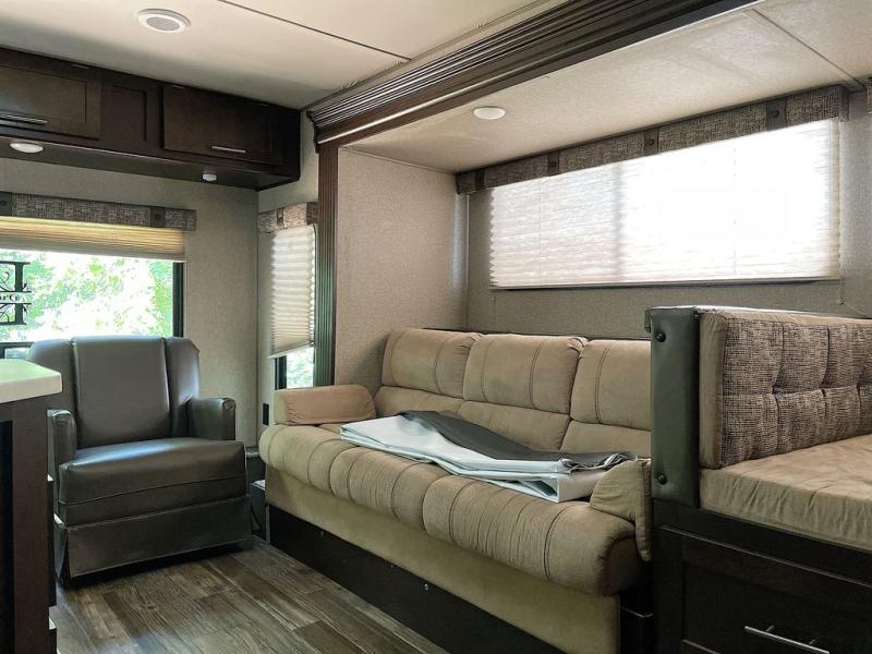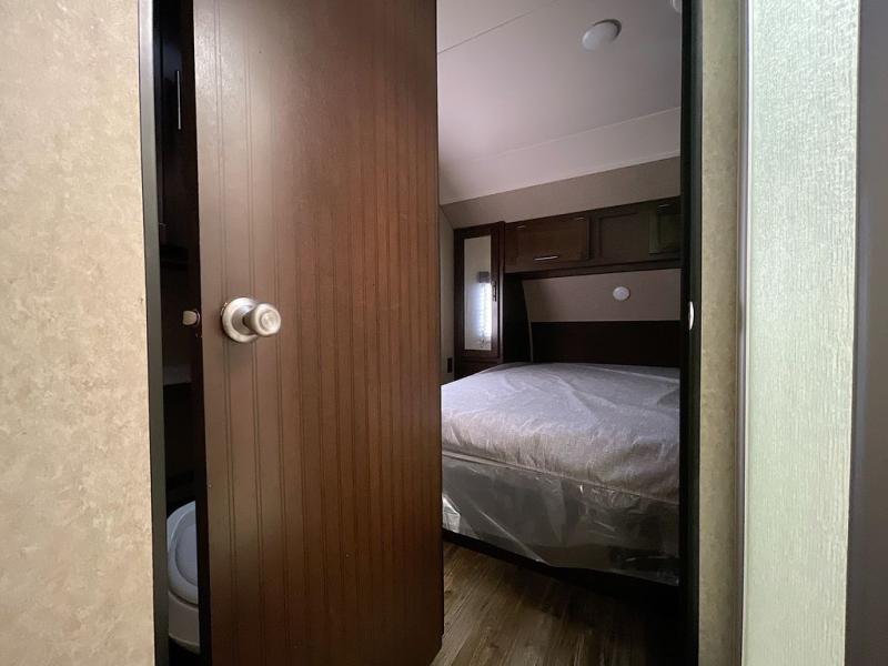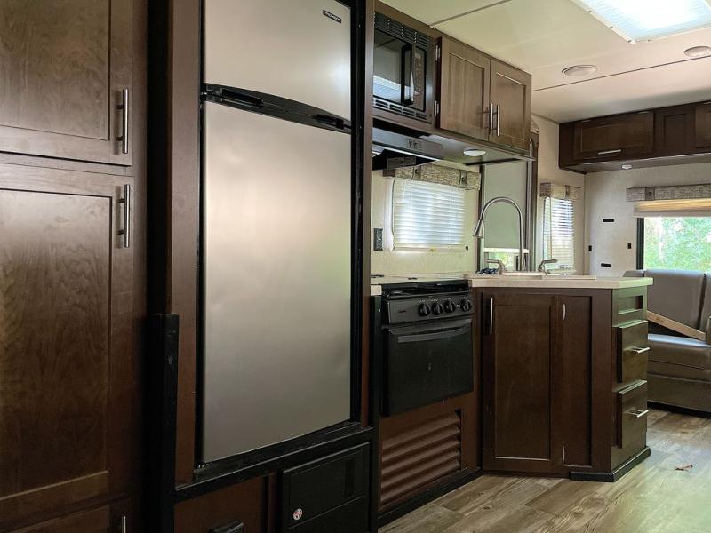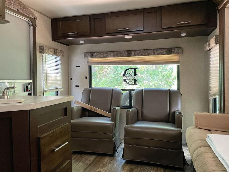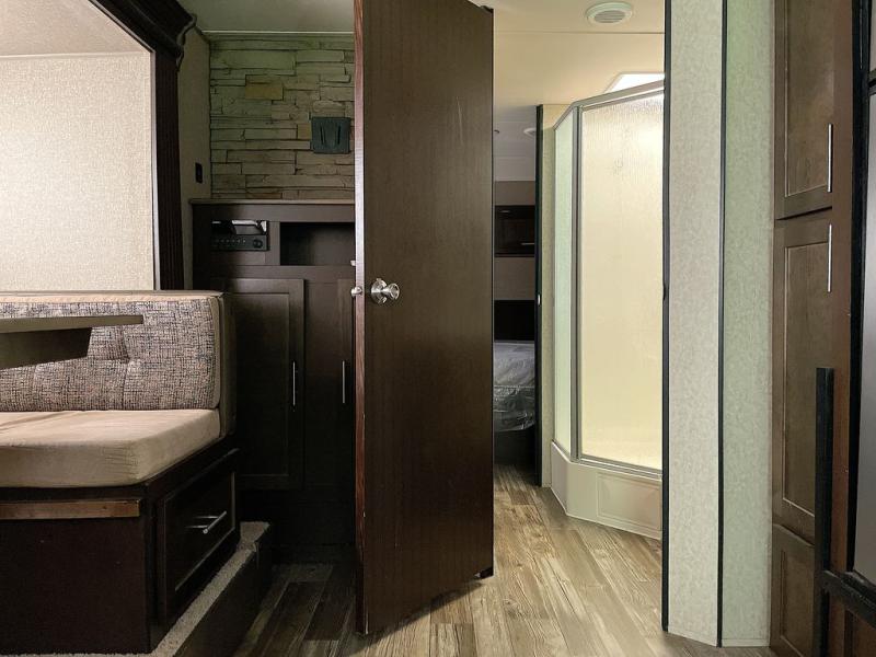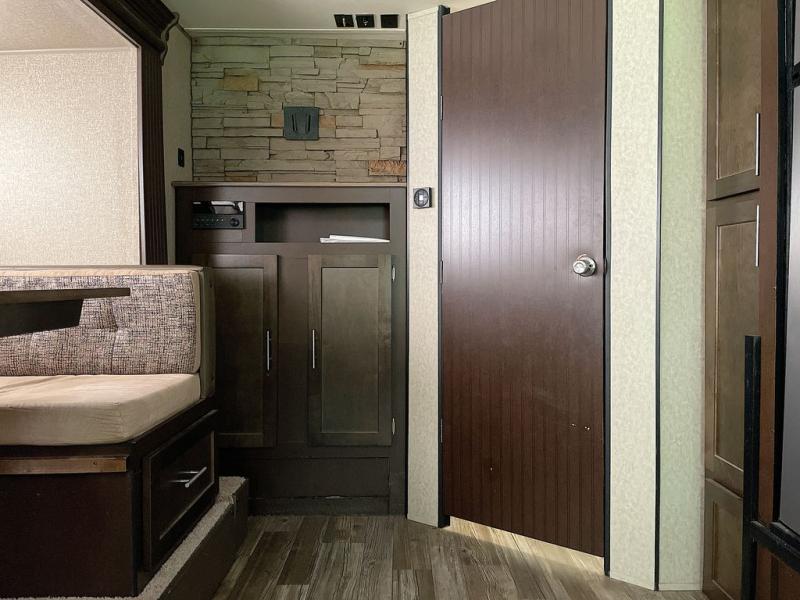 You will also find plenty of overhead cabinets throughout the travel trailer, as well as outside storage, plus so much more.