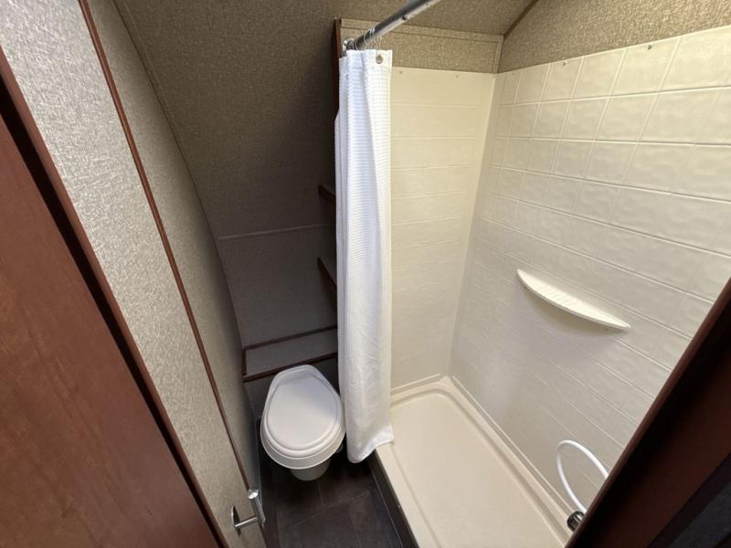 The 19V Super Sport Vengeance toy hauler travel trailer by Forest River offers a front bath and easy loading and unloading of your off-road toys with the rear ramp door.