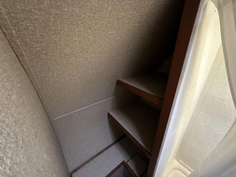 There is plenty of overhead cabinets throughout the toy hauler, as well as outside storage. Outdoors you will even find a TV mount.