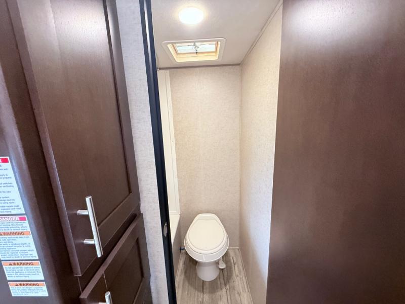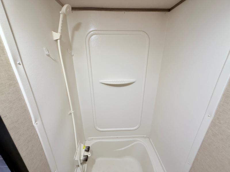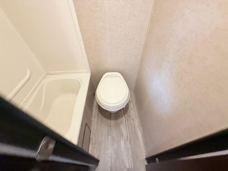 The very back left corner features a private tub/shower and toilet area. Right next door a set of bunks that the kids will enjoy sleeping on, plus so much more!