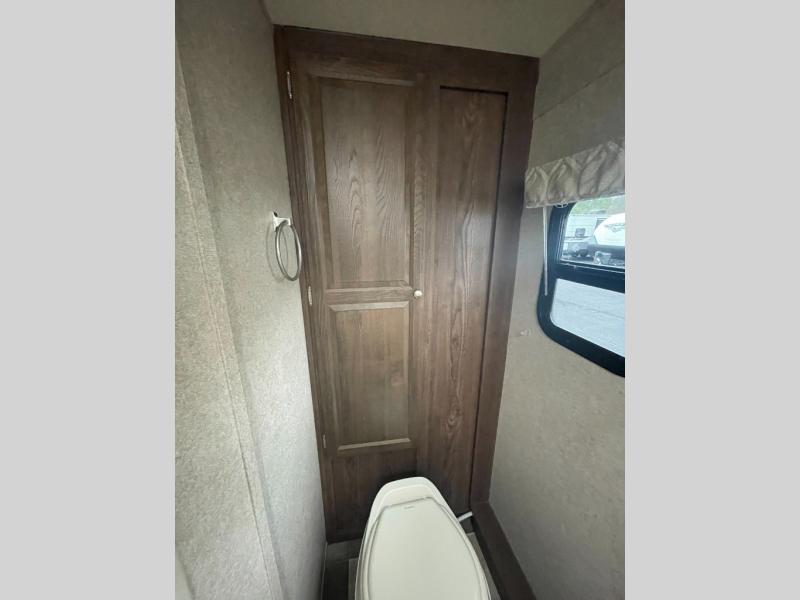 Storage is not a problem with the overhead cabinets and the exterior storage. You can even choose an optional rear ladder and optional gas grill outside, plus there are so many more amenities and options available in this travel trailer!