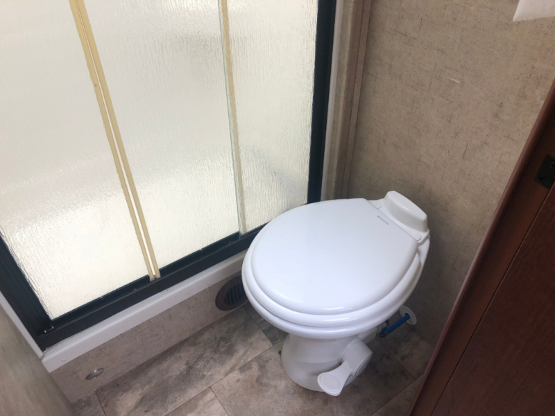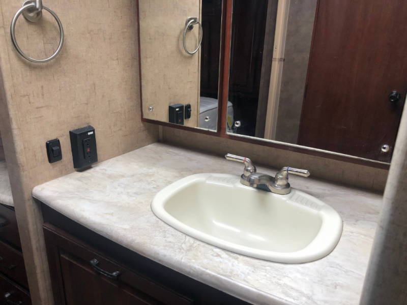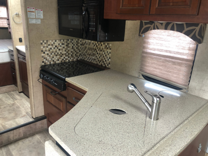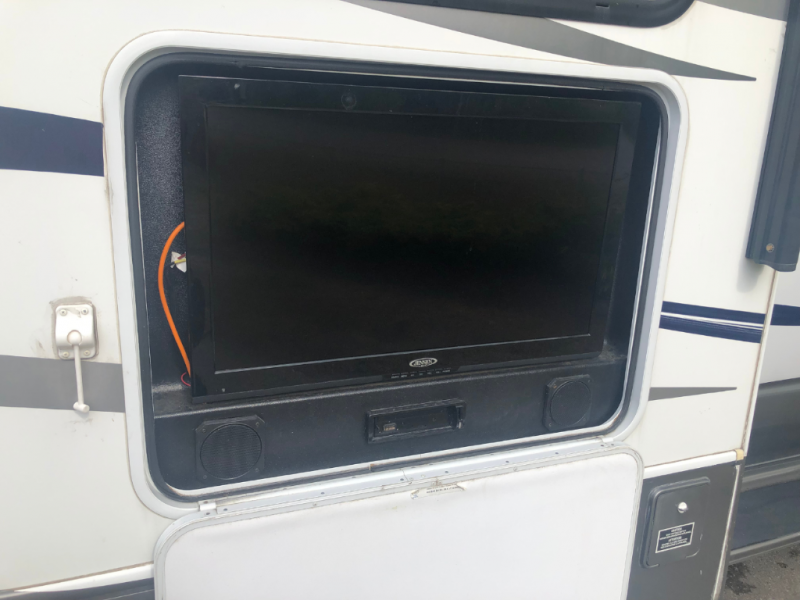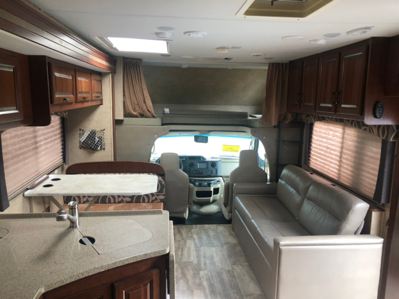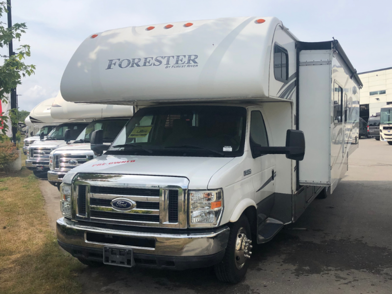 The Ford chassis Forester 3051S features a full wall slide on the driver's side of this class C motor home.