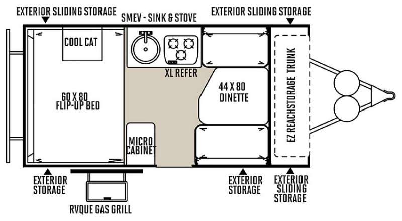 A sliding front storage compartment provides extra room for outdoor gear, cooking supplies, and travel essentials, keeping the interior organized and clutter-free. -