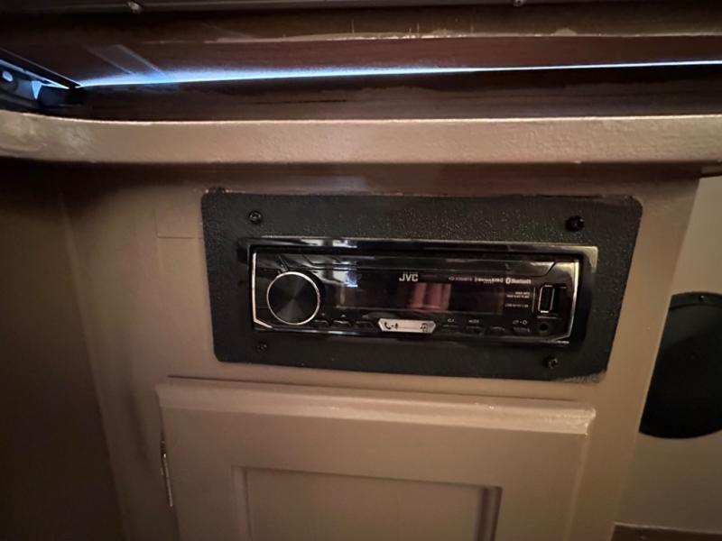 As you enter, a port-a-pottie is immediately to your right. Storage is included in the front corner with an L-seat over it, extending part way across the front. The opposite corner holds lift-up storage.