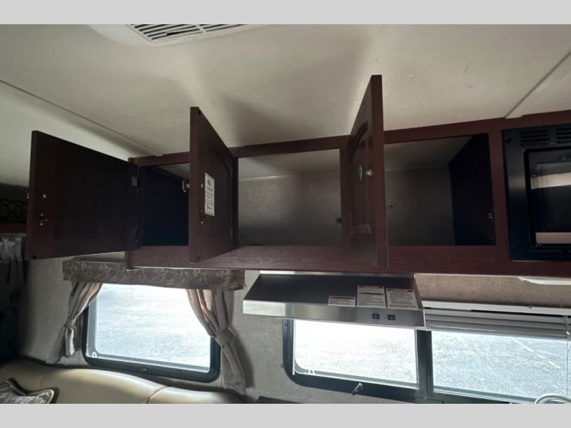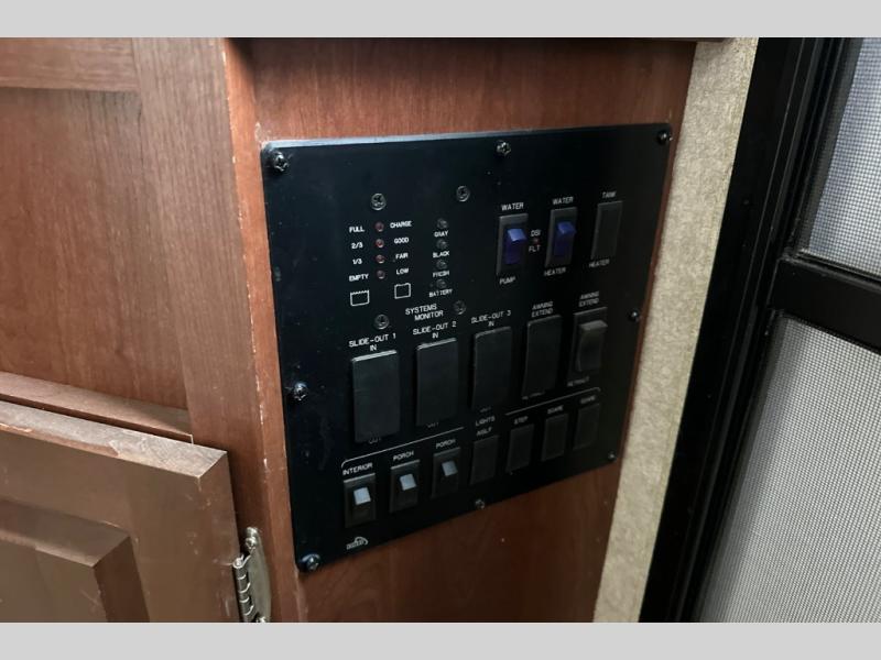 Exterior storage is available at the rear and on the curb side of the expandable. There is also an awning and space for an optional gas grill.