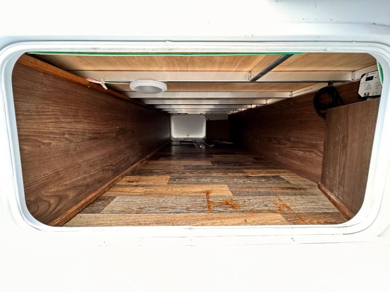 The bunk house is located in the rear right side of the trailer. The bunk beds measurements are 48" x 76".