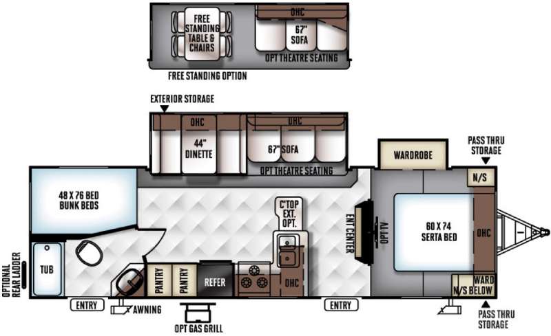 There are many overhead cabinets throughout the trailer to pack your camping items. You can even choose an optional gas grill and an optional rear ladder, plus there are so many more options and amenities!