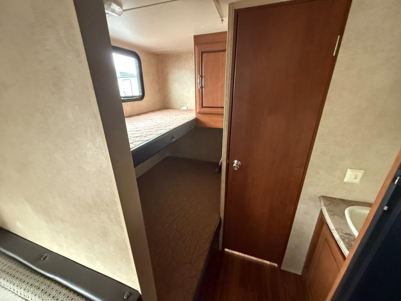 Inside the Salem Cruise Lite 261BH travel trailer you will find a rear bunk house, and a rear bathroom.