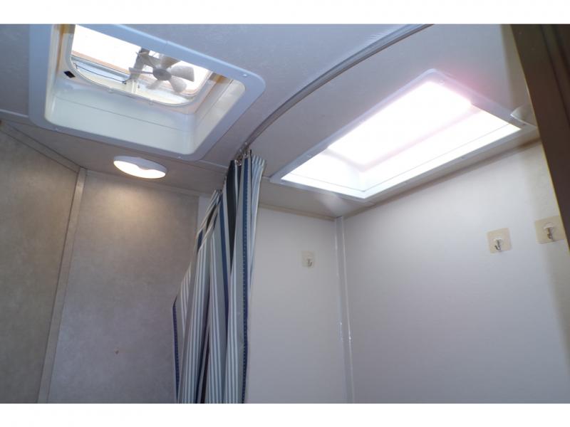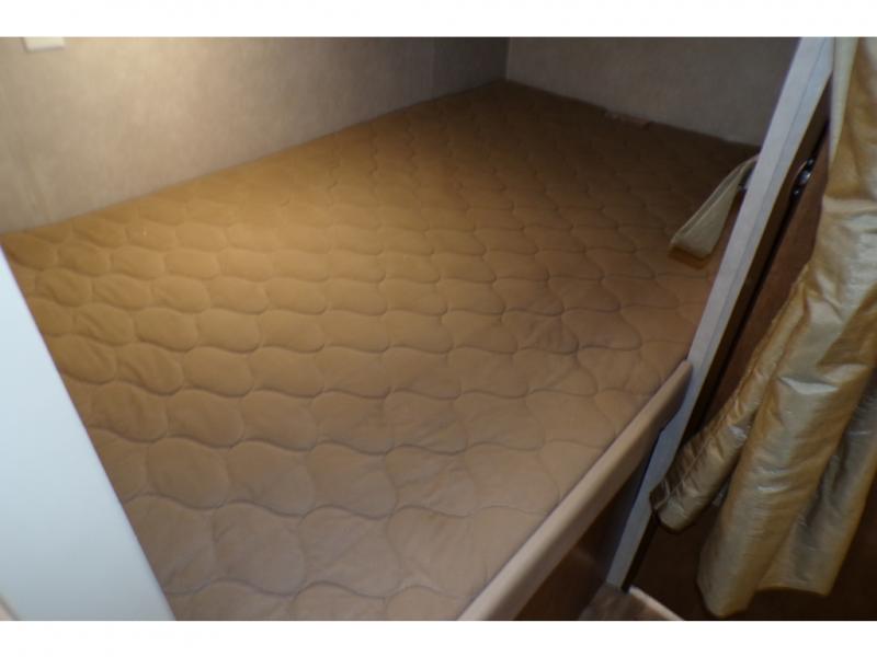 In the rear you will find a double bed with a single bunk above the double bed. You will also find a rear wardrobe.