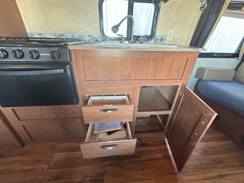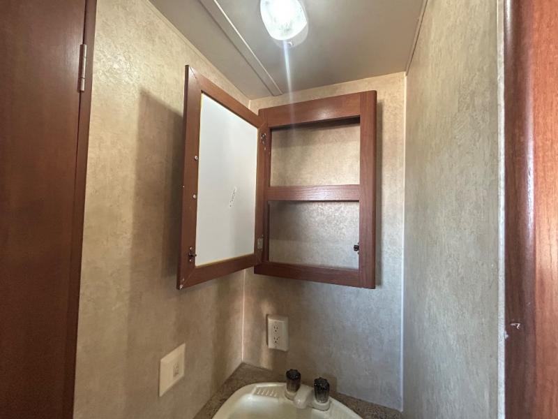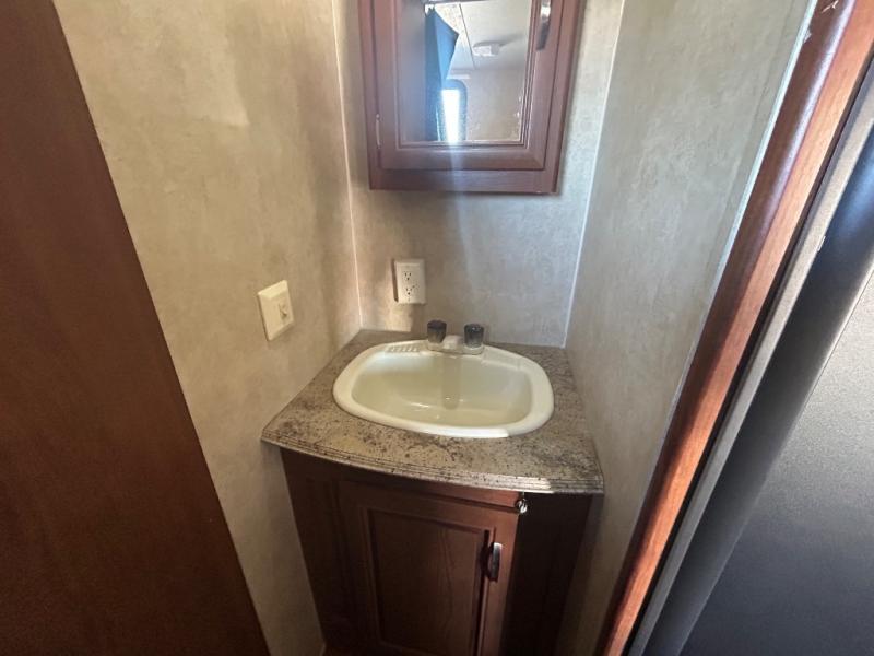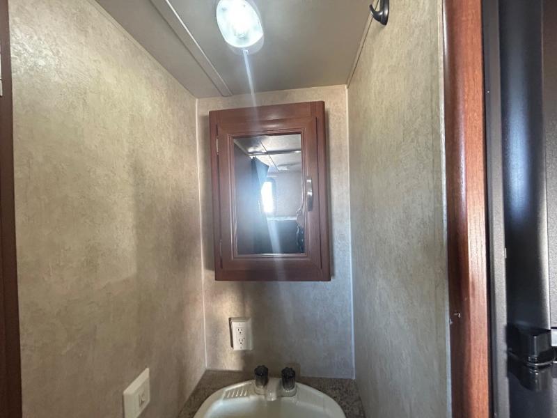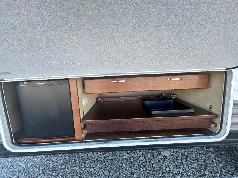 There are plenty of overhead cabinets throughout the travel trailer as well as an exterior pass thru storage. You can even choose an optional outside kitchen, and much more.