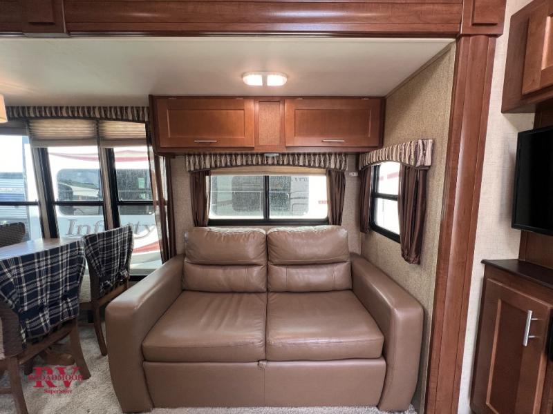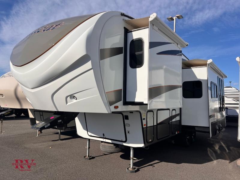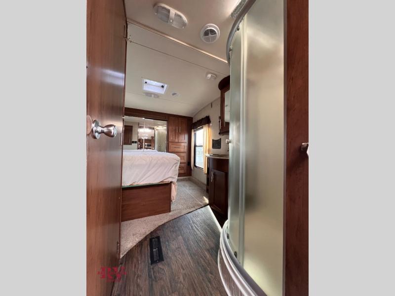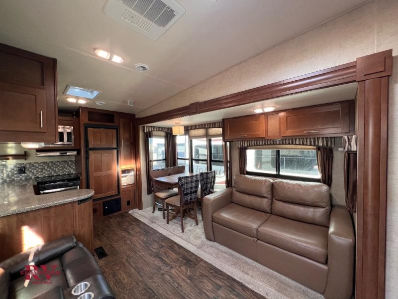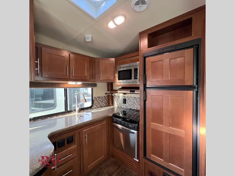 With all of the overhead cabinets inside the fifth wheel there should not be a problem with storage. The outside offers a pass through slam latch so you can easily access your items throughout your camping trip, and more!