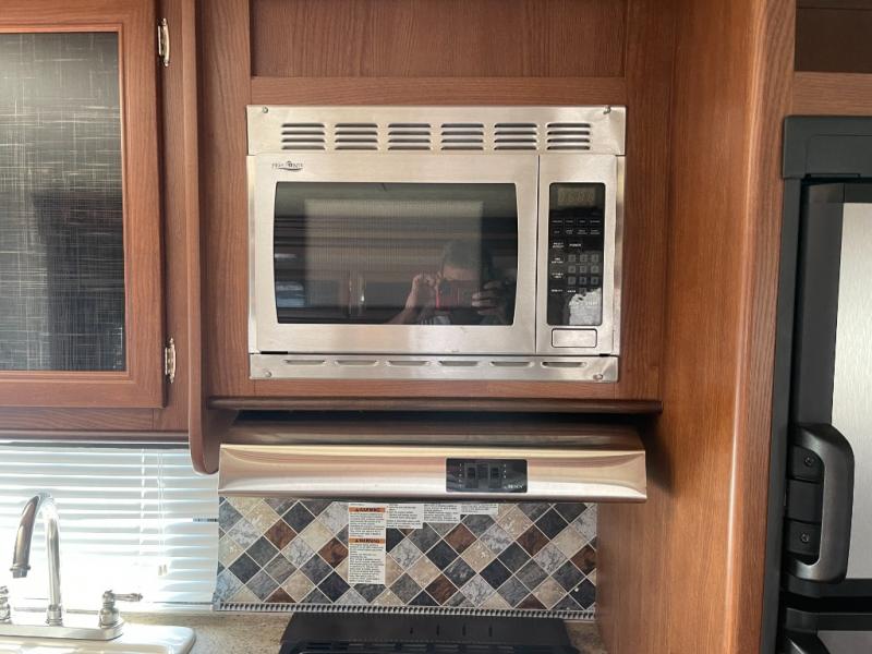 You will find plenty of overhead cabinets throughout the trailer as well as a large exterior pass thru storage area, plus more!