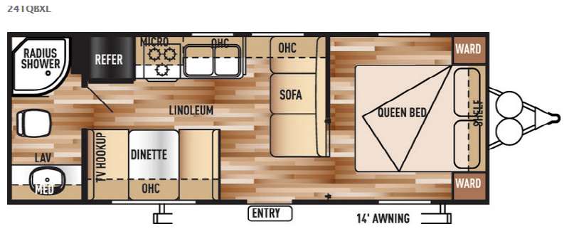 Enjoy your time away from home camping in the Wildwood X-Lite 241QBXL travel trailer by Forest River. This model features a rear bath and a front bedroom.