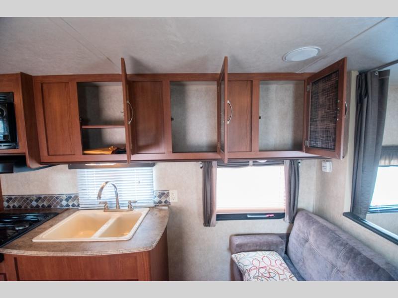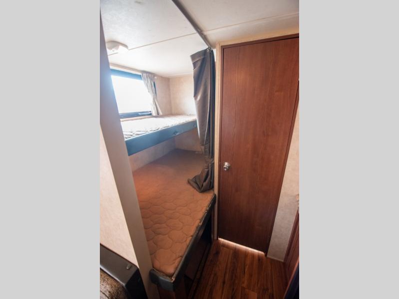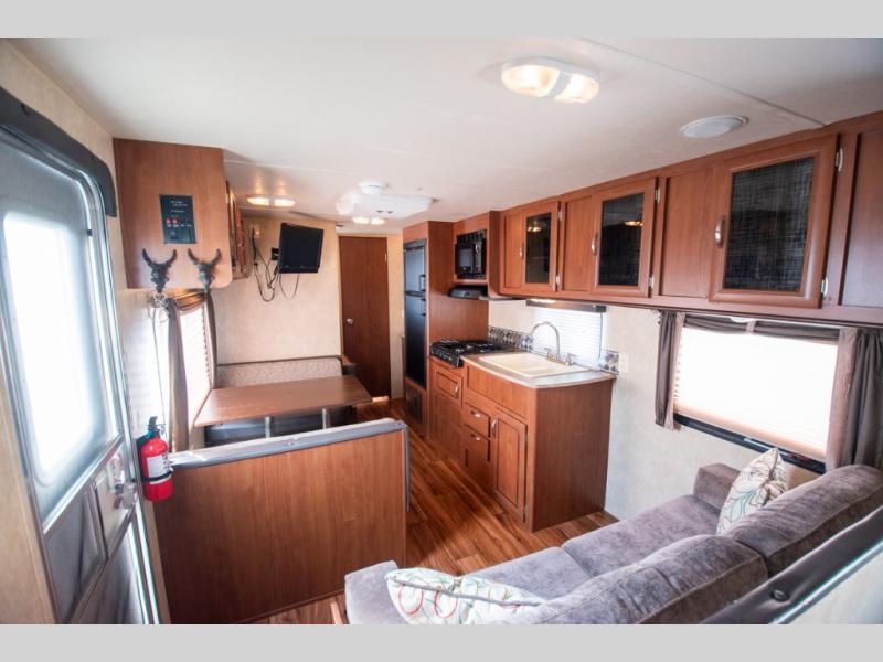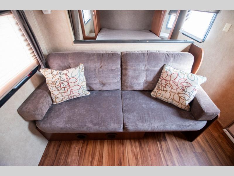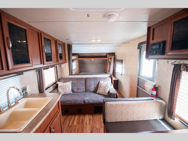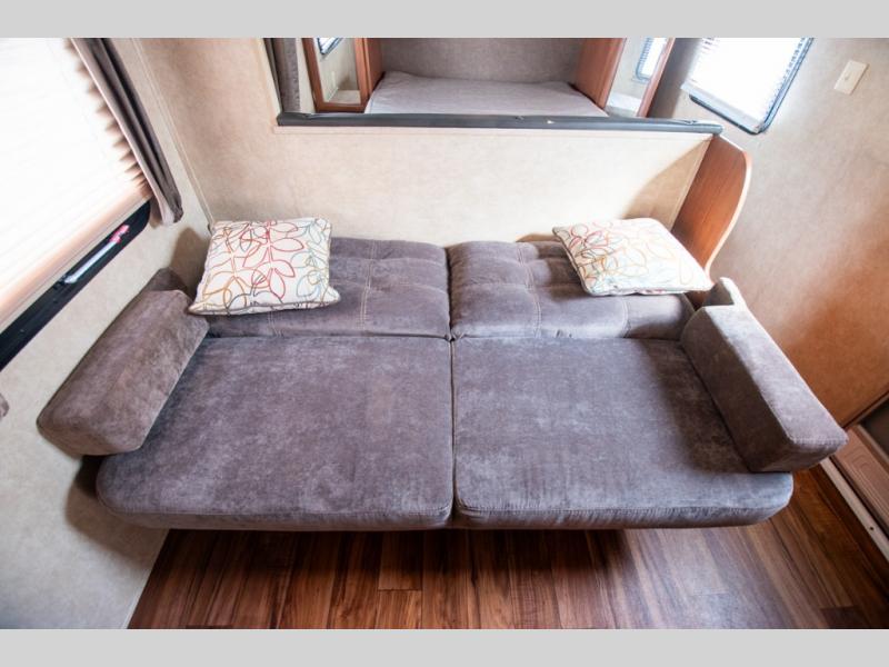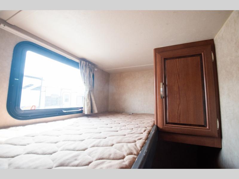If you need a bit more sleeping space for your family, then choose the Wildwood X-Lite 261BHXL. This travel trailer features a rear set of bunk beds and a front bedroom.