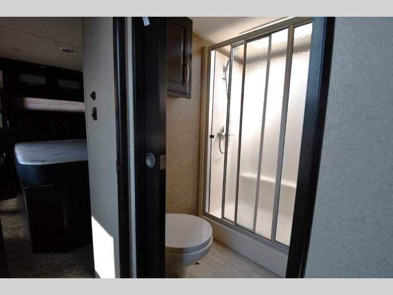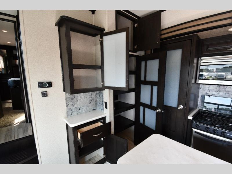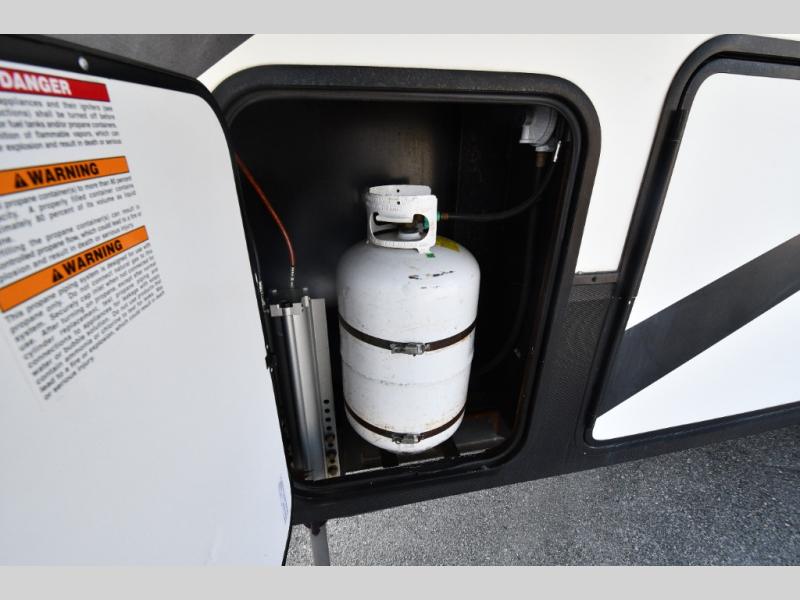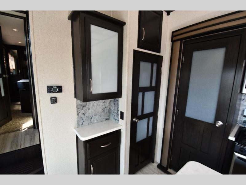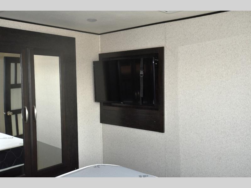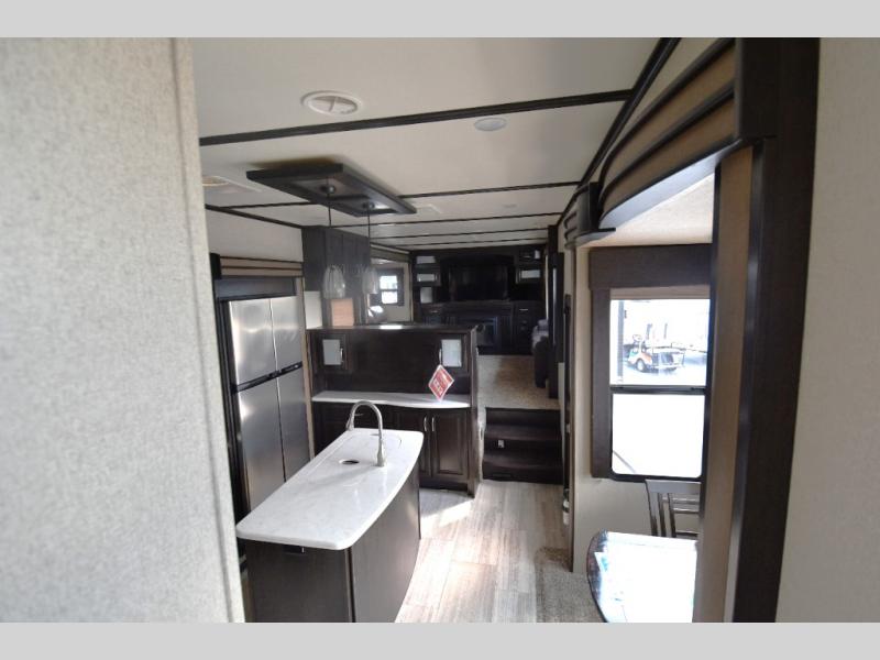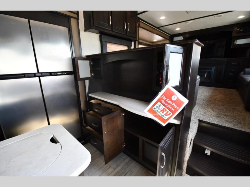 Take your adventures to the next level with the pre-owned 2016 Grand Design Momentum 376TH, a luxury toy hauler fifth wheel available at the Campers Inn Macon, GA location that blends rugged capability with upscale residential comfort. Its innovative rear garage keeps your motorcycles, ATVs, or gear secure while maintaining a spacious interior. The rear ramp door makes loading easy, and the raised living area features opposing slides, theater seating, a fireplace, and a full entertainment center. The residential-style kitchen offers solid surface countertops, premium appliances, and plenty of storage. A private king bedroom provides a comfortable retreat with wardrobe space and direct bathroom access to the full-size shower and high-end fixtures. Built with Grand Design craftsmanship, the Momentum 376TH is designed for strength, luxury, and long-lasting performance, making it one of the most desirable used toy hauler RVs at Campers Inn Macon, GA.