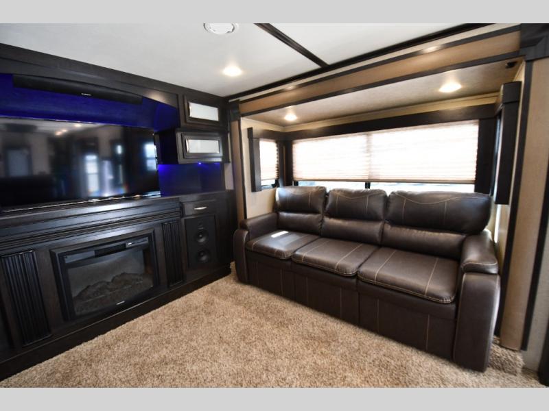 The 2016 Grand Design Momentum 376TH isn’t just a toy hauler—it’s a luxury home on wheels for travelers who expect more. Its smart layout, high-end finishes, and flexible garage space let you bring everything you love on the road while enjoying five-star comfort. This used luxury toy hauler also delivers incredible value, offering Grand Design’s premium features at a more affordable pre-owned price.