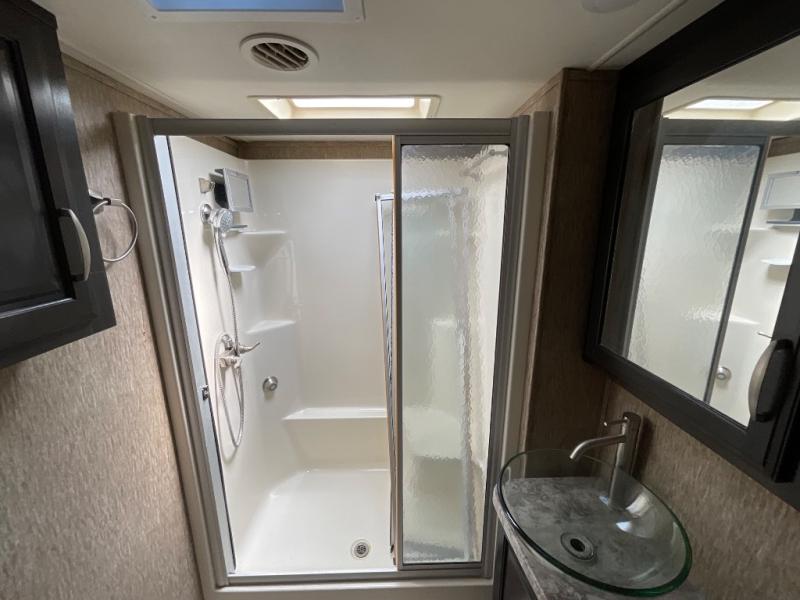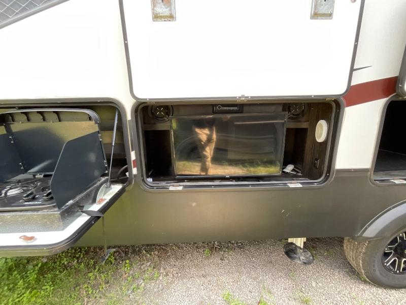 Off the back side beneath the master bedroom you will find a 9' garage that is perfect for your street bike or other adventure gear. Loading and unloading will be easy using the 59" x 92" rear ramp door.
