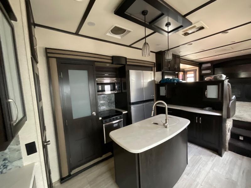 You are sure to love all of the entertainment space that this Grand Design Momentum model 376TH has to offer. This unique toy hauler fifth wheel features a front living area, a 9' garage, plus a few conveniences like an outdoor kitchen, a fireplace, and more!