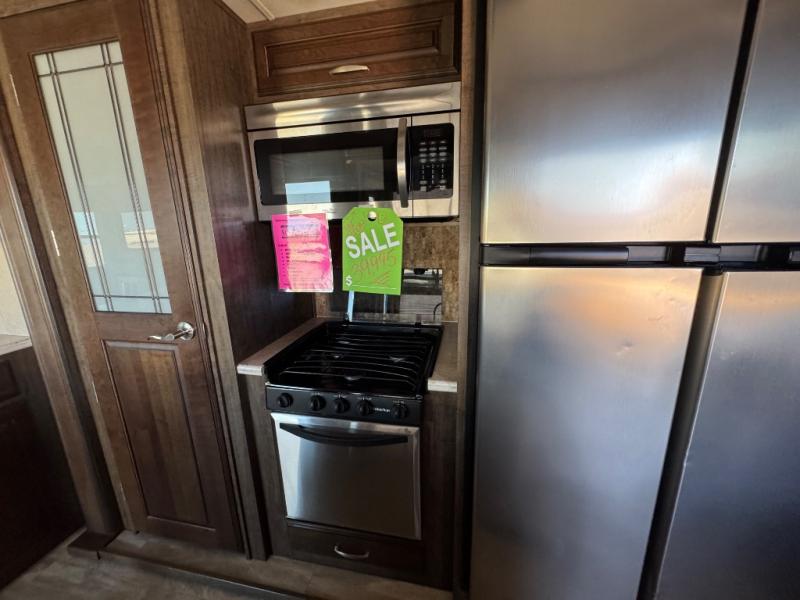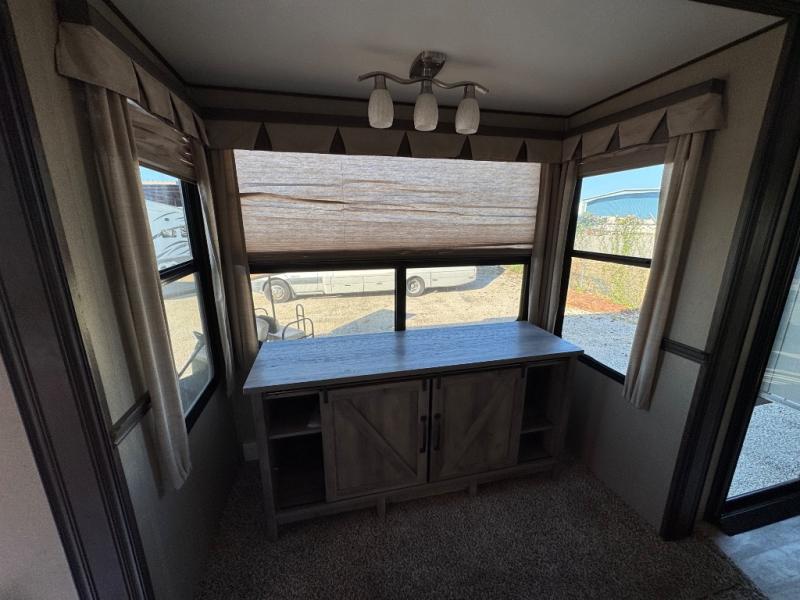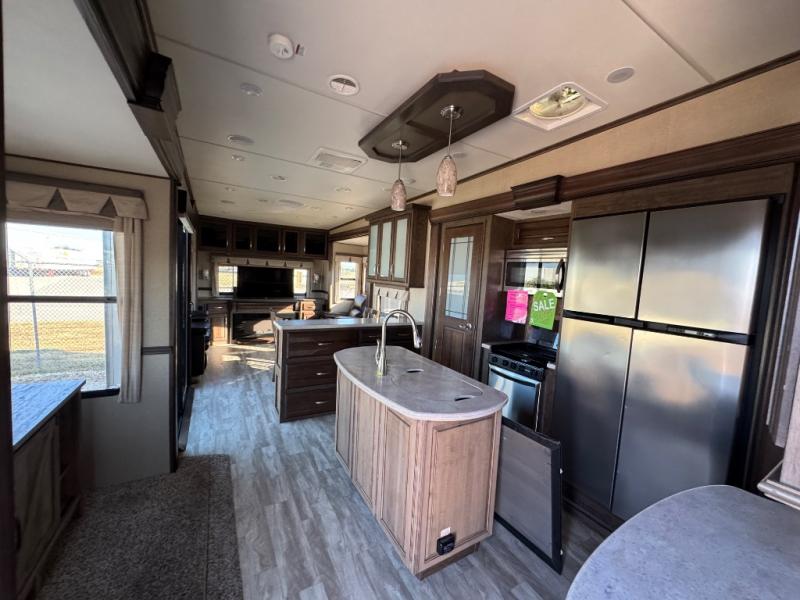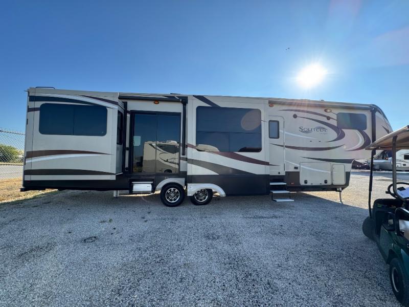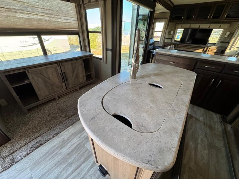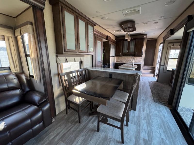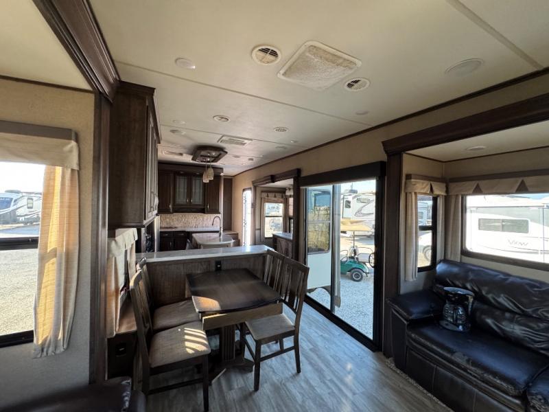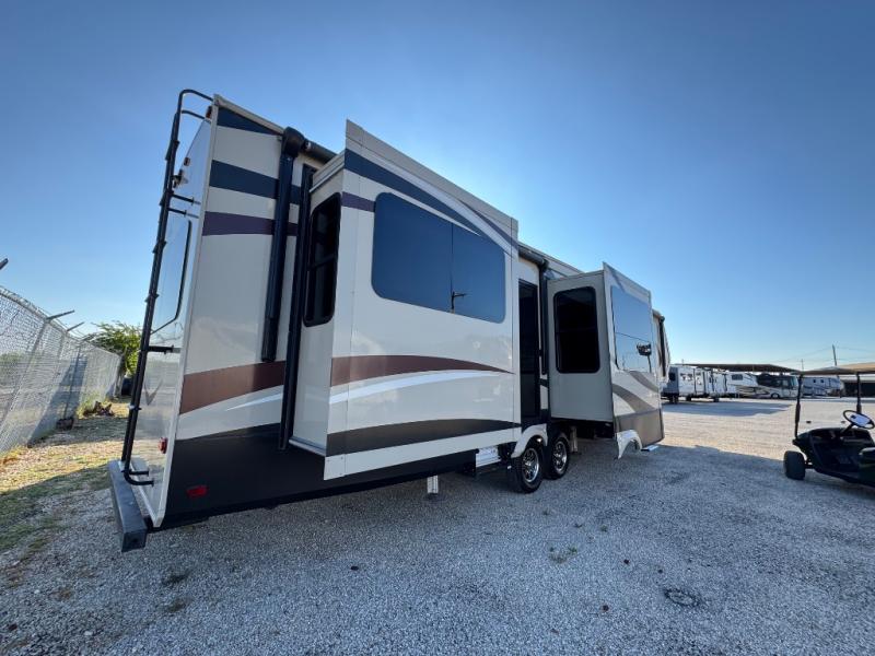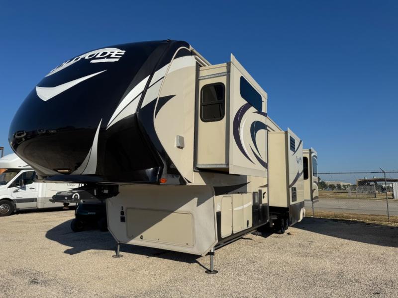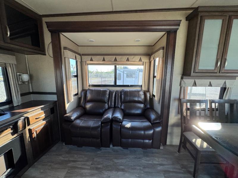 This dual entry Solitude 375RE is the perfect entertainment fifth wheel with FIVE slide outs to add more interior space for moving around.