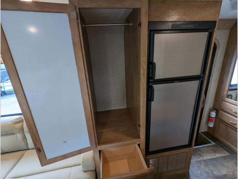This BT Cruiser 5230 touring coach is a bit larger than the 5210 with a very similar layout. The main difference in this one, besides its size, is having a slide out for added interior space, plus a pantry cupboard for food storage!