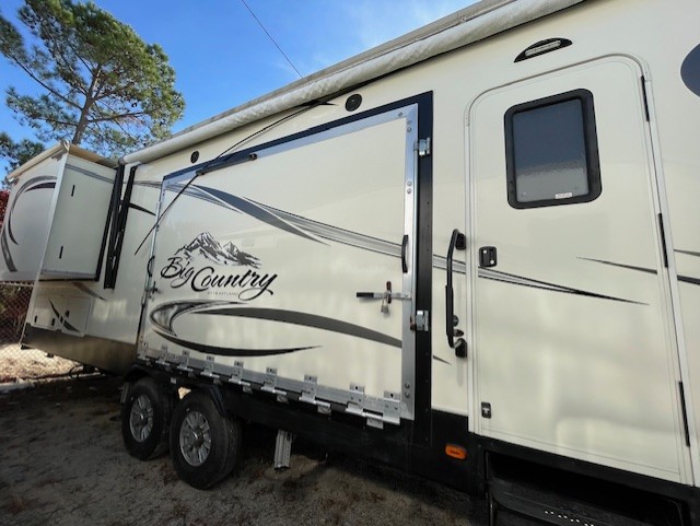The outdoor patio that extends off the curb side wall is the popular feature of this Big Country fifth wheel unit. Open up the sliding doors to extend your living space right outdoors. The patio provides a safe space to hang out off of the ground while keeping you nice and dry too.