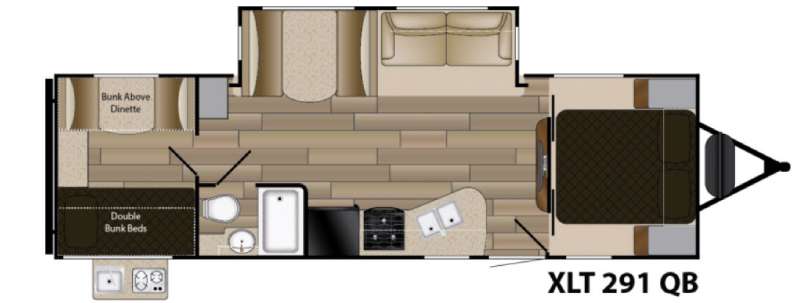 Bring along a the whole family, and even a few extra friends on your next camping trip. With the Sundance XLT 291QB travel trailer by Heartland RV, you will find a single slide, rear bunk house, and outdoor kitchen.