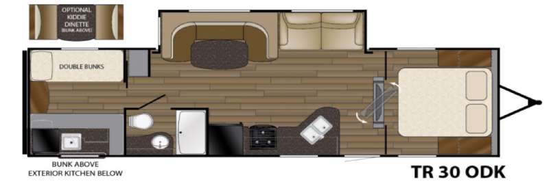 You can choose a kiddie dinette in place of the bottom bunk on the right side of the bunk room, and more!