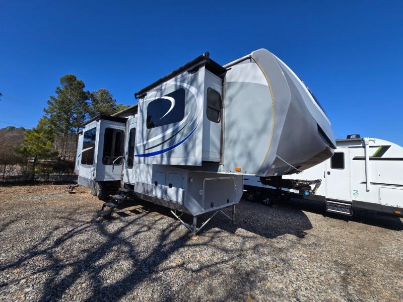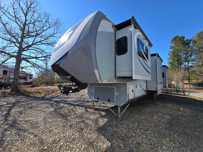 This front living Open Range 3X fifth wheel model 377FLR by Highland Ridge has everything to keep you comfortable while you travel. You will love the raised front living room with dual slides, a spacious kitchen and dining area, plus master bedroom with king bed, washer/dryer prep, and dual entry doors! Oh, and did I mention FIVE slides total!