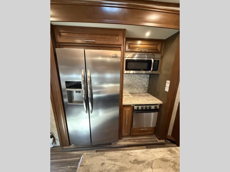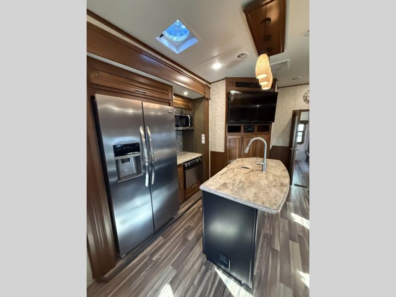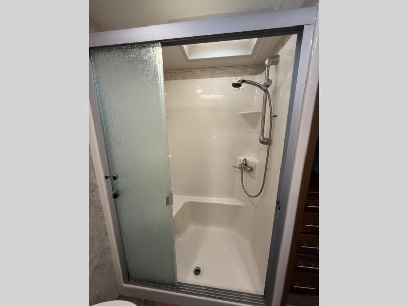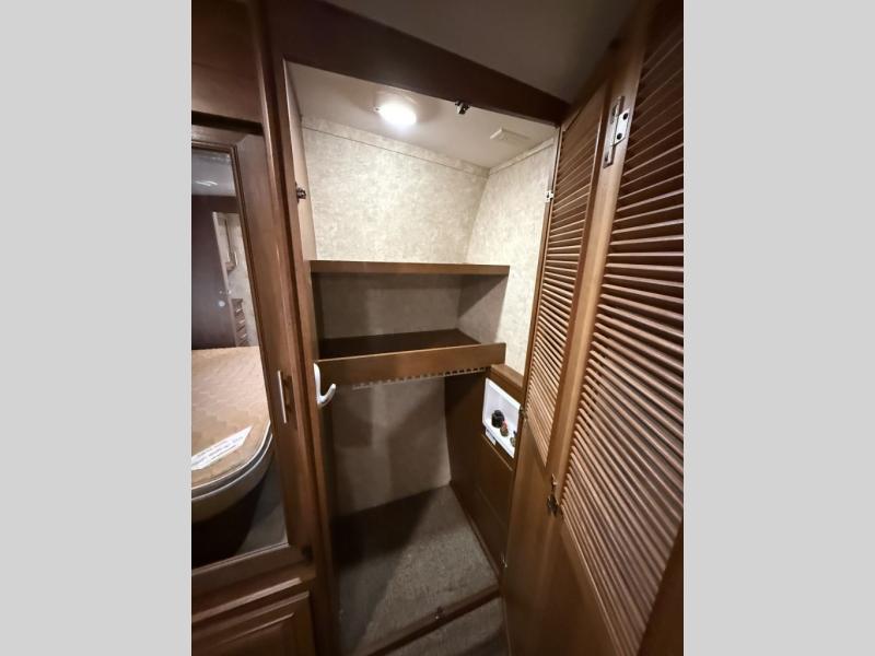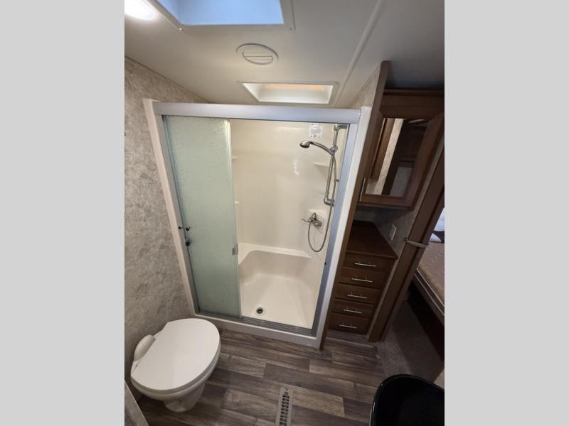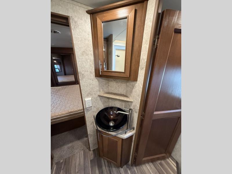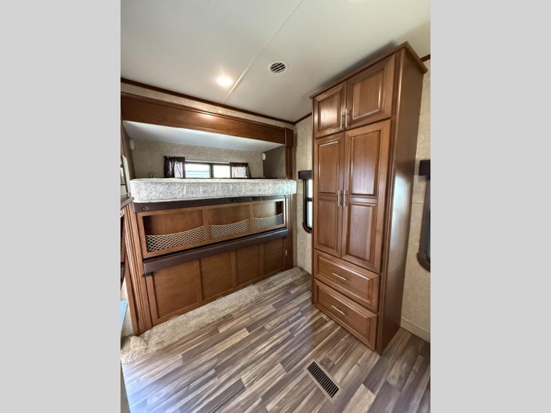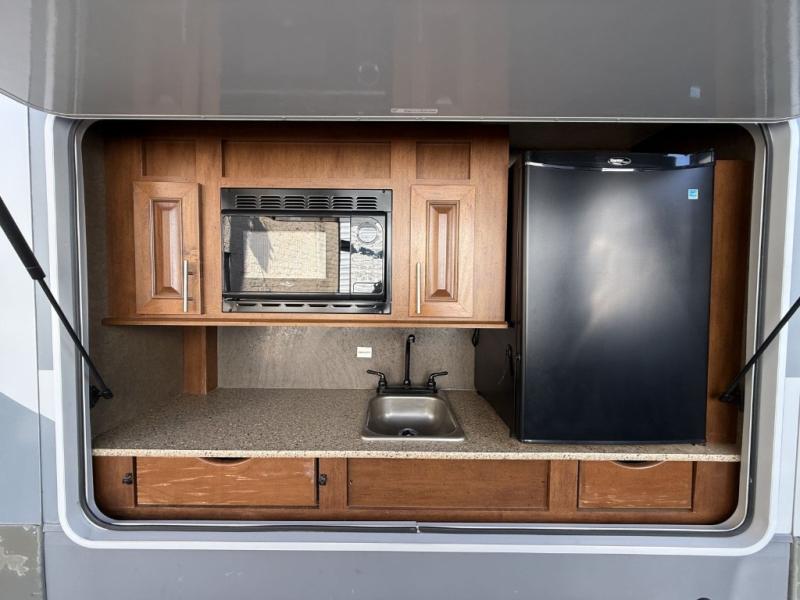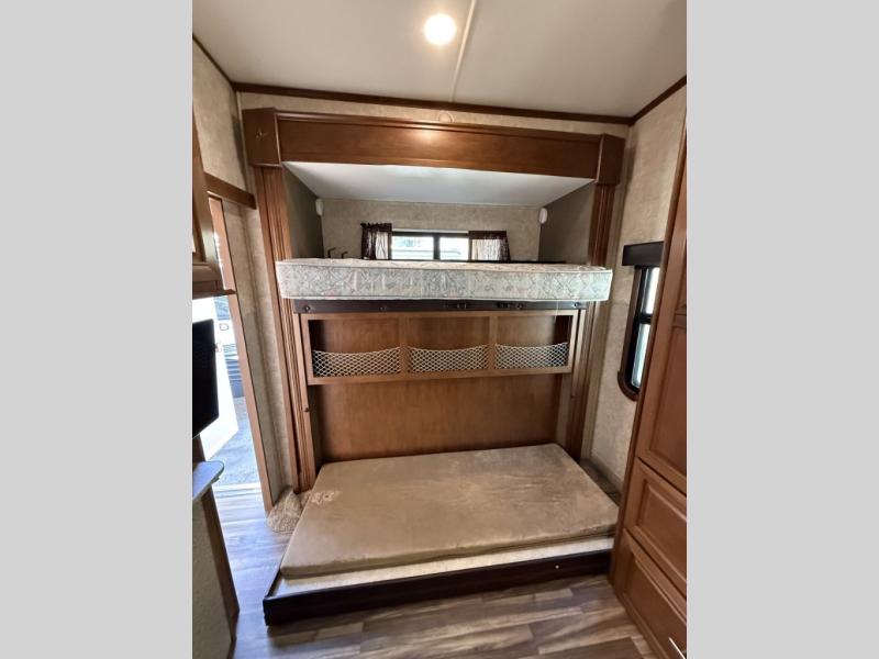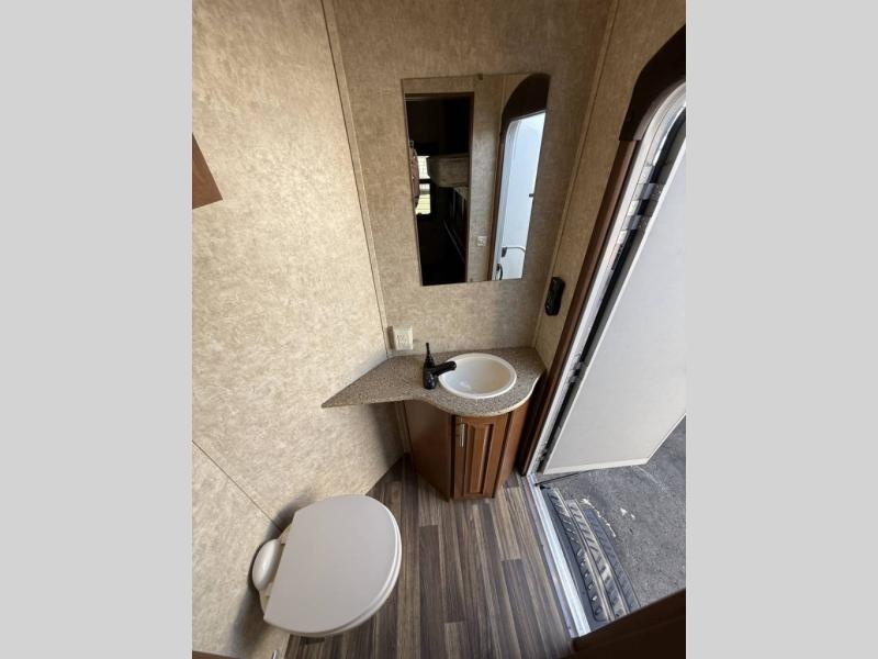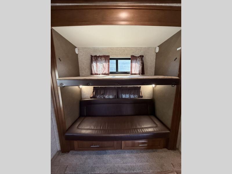 The rear of this 3X 427BHS offers a private bunkhouse for the kids or extra guest. There is even a private half bath that will come in handy when spending time outside. The half bath features a toilet and vanity with sink, plus overhead storage.