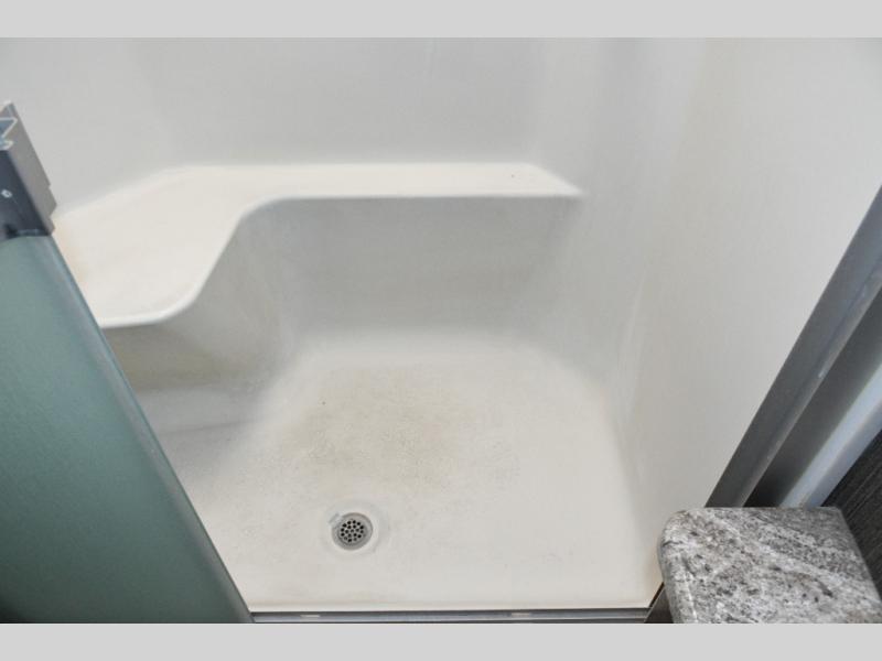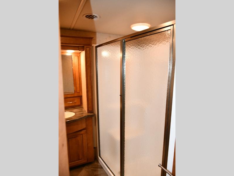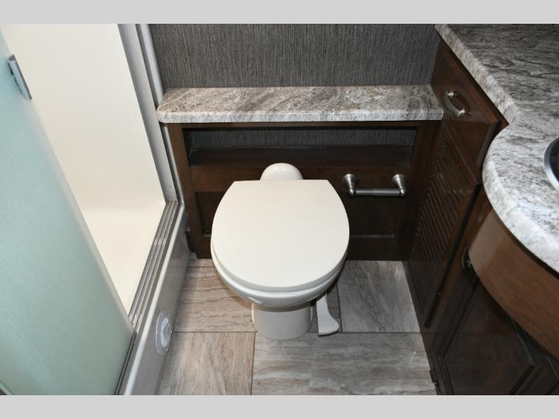 Large Bathroom with spacious shower, toilet, and slide-out vanity