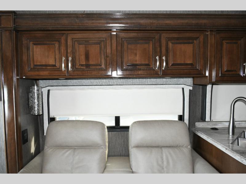 From the moment you step inside, the Meridian 38P impresses with its airy layout and upscale design. The front living area feels open and inviting thanks to opposing slides, making it perfect for entertaining or relaxing after a day of exploring. The kitchen’s U-shaped design offers both functionality and style, giving you plenty of room to cook, serve, and gather.