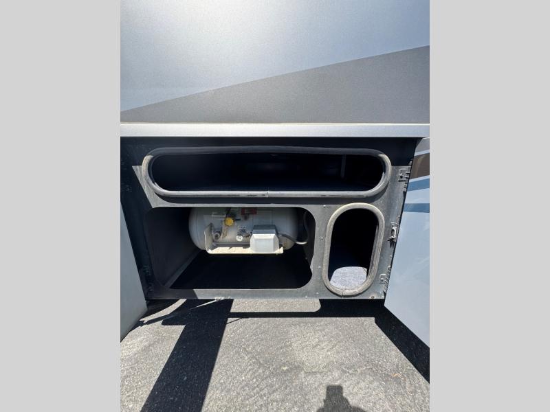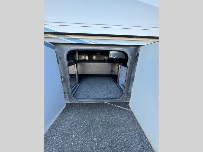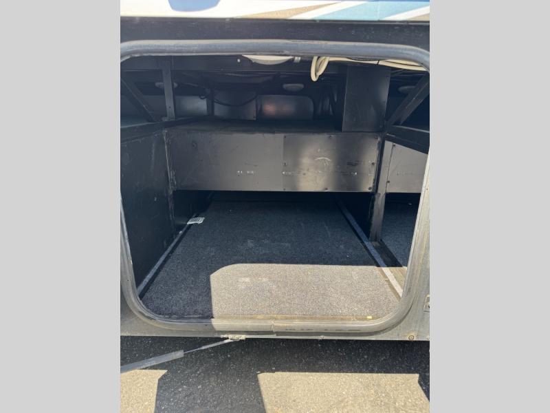 The rear master bedroom features a queen bed slide including nightstands and overhead storage. The chest of drawers opposite is part of the large slide on the road side that also features the kitchen appliances. Here you will enjoy storage drawers for your things, plus there is a HDTV location as well. Along the rear wall find even more storage with a wardrobe and cabinet. You can choose a king size bed if you wish for a bit more sleeping space, plus so much more!