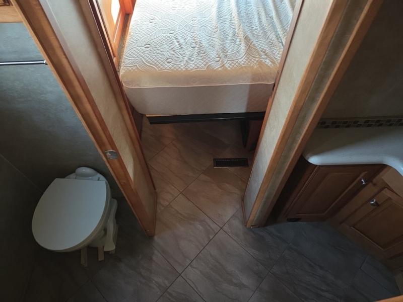 Double sliding doors lead into the rear master suite with a king bed slide, or optional queen. Along the rear wall find a wardrobe, storage cabinet, plus so much more!