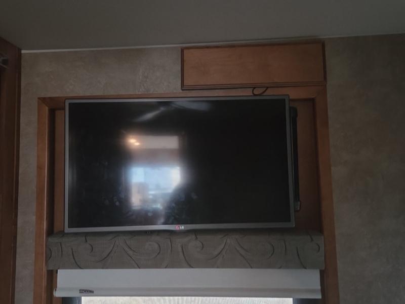 As you enter notice the BenchMark dinette slide out on the right side. There is a a HDTV location to the left of the door at an angle for perfect viewing from any seating in the space.