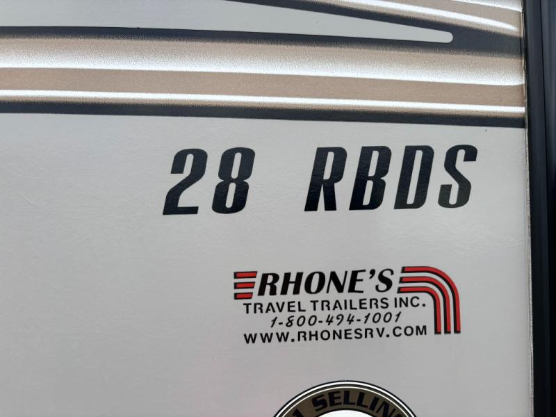 Stepping inside the Jay Flight 28RBDS travel trailer by Jayco you will notice that this travel trailer features a rear bath and double slides. The slides help to open up the floor space and give you a more spacious feel about the trailer.