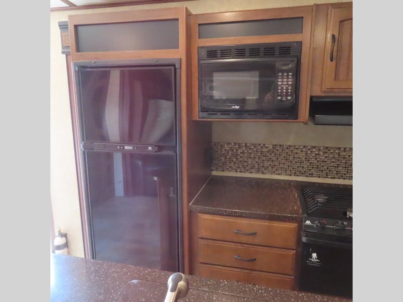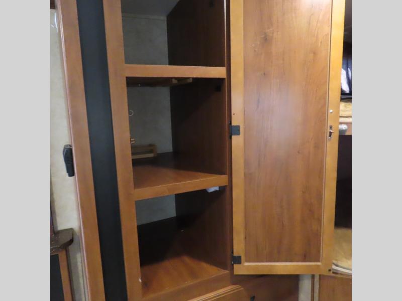 As you enter the front main entrance, there is a bench seat with storage and overhead cabinet. You will enjoy watching TV or movies on the entertainment center which is next to the bench and road side slide.