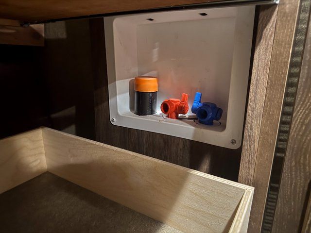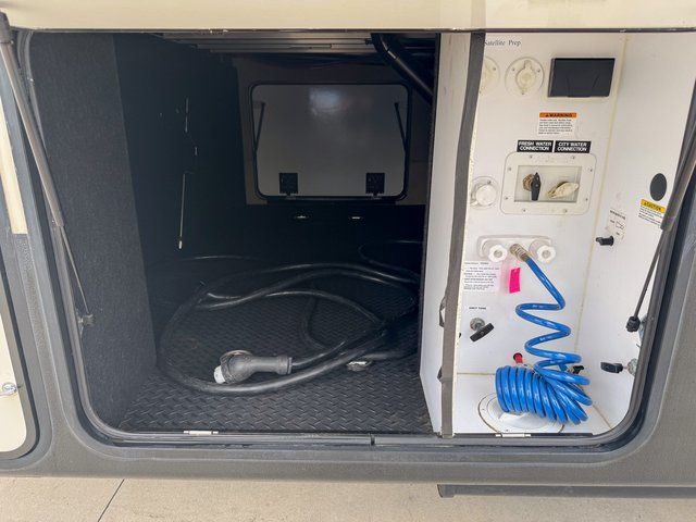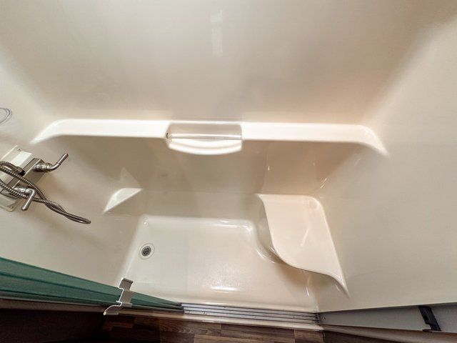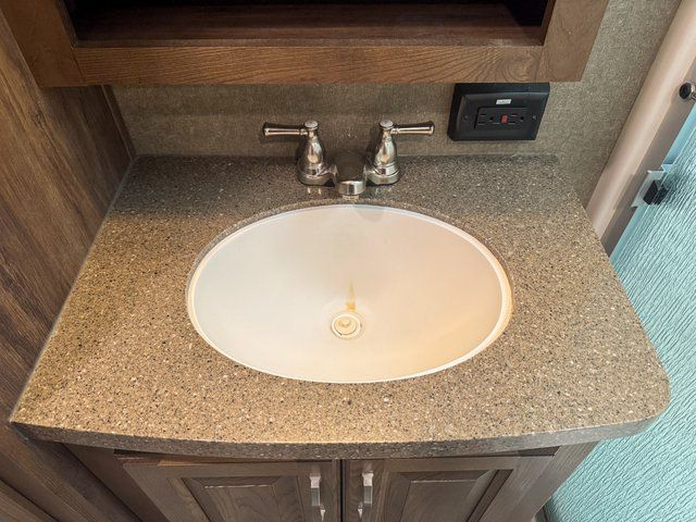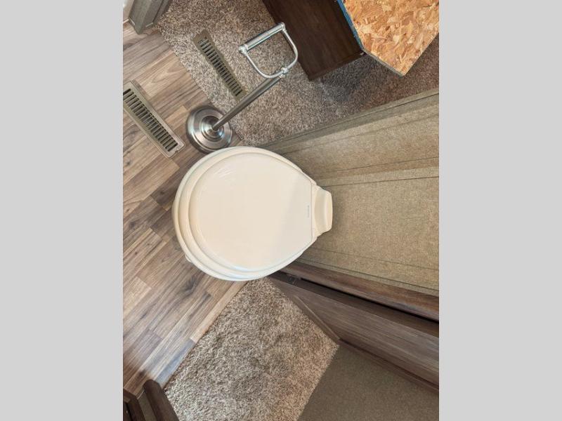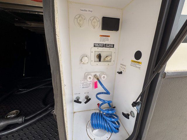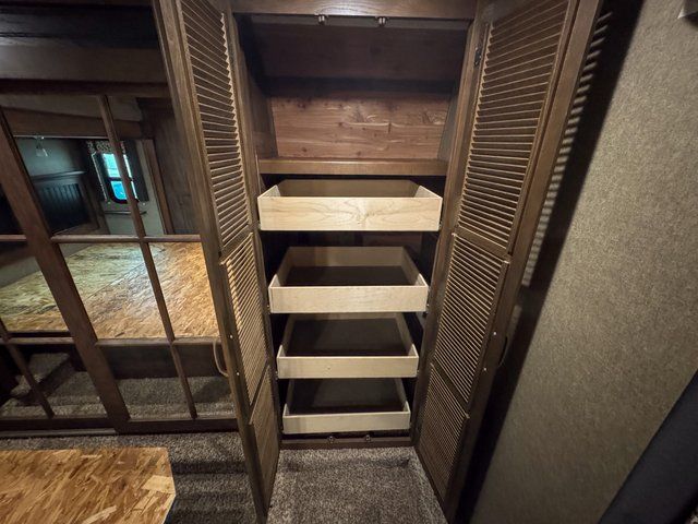 The front private bedroom provides a comfortable place to relax and rest up for the next days adventure. There is a king bed slide, chest of drawers opposite the bed, and front closet with sliding doors, washer and dryer closet with drawers, and so much more!
