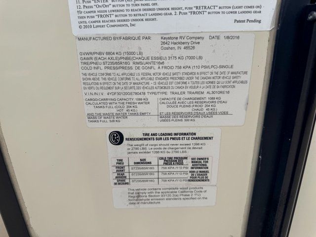 Used 2016 Keystone RV Alpine 3010RE Fifth Wheel
