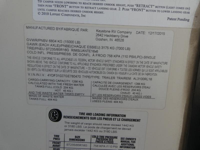 Used 2016 Keystone RV Alpine 3100RL Fifth Wheel