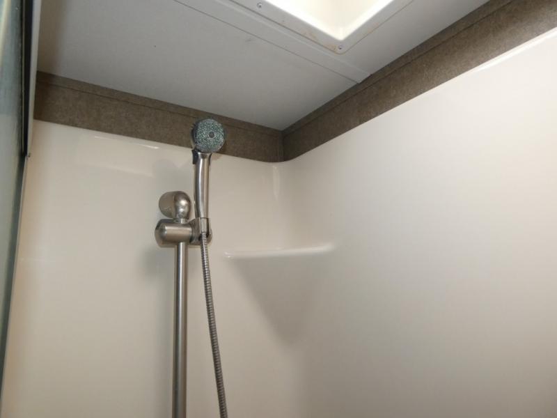Along the rear wall of this Alpine unit enjoy more seating with two recliners and full width overhead cabinets to help keep things neatly tucked away and organized.