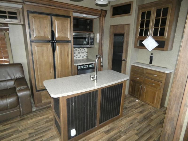This rear living Alpine fifth wheel model 3100RL features triple slides, a king size bed, and a convenient kitchen island, plus so much more!