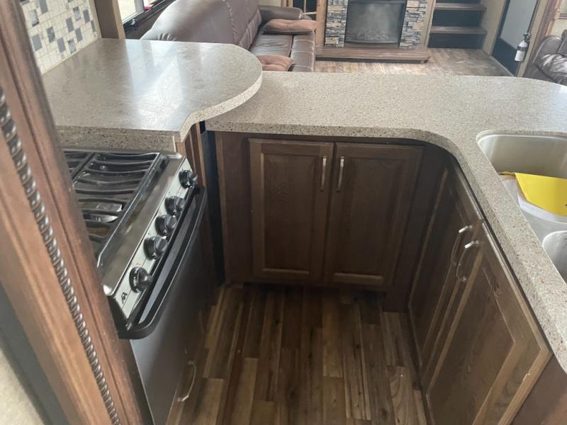 This rear kitchen Alpine fifth wheel by Keystone RV is the perfect unit for those who enjoy being able to entertain while camping. Model 3470RK features triple slide outs for added interior space, a king size bed, a fireplace, plus more!
